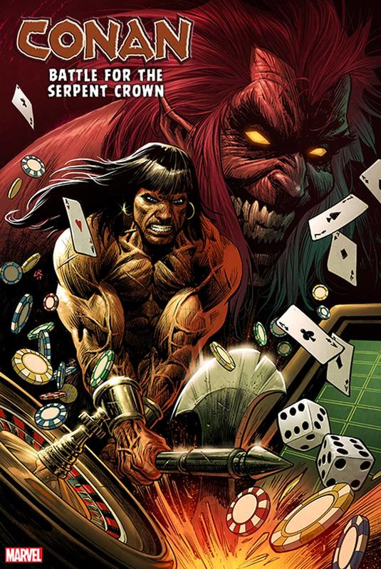 Conan is back in an all-new series and in unfamiliar territory, outside of the Hyborian Age! The barbarian, created by Robert E. Howard, will dive deep into the Marvel Universe, meeting both its iconic heroes and villains, including the devilish Mephisto! The upcoming series will follow the savage as he navigates Las Vegas on an epic quest to find the Serpent Crown of Atlantis.