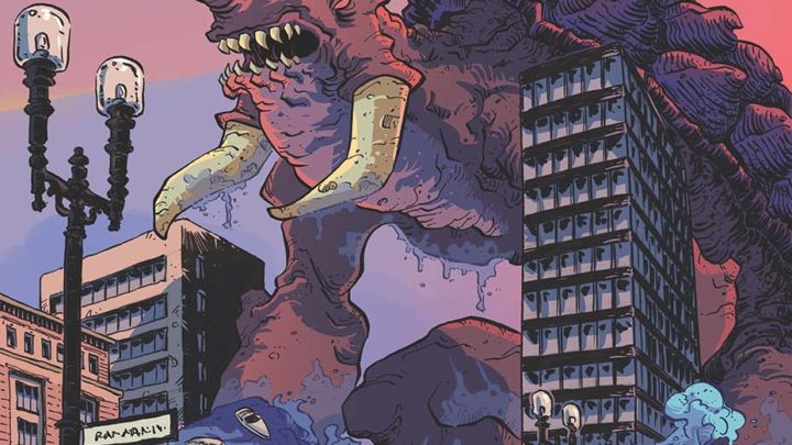 “The Kaiju Score is a Quentin Tarantino film taking place in some corner of a Godzilla movie,” said Patrick. “You have this giant canvas of a kaiju attack occurring, and as it happens there’s this more personal story going on. And after that setup, it explores how these four characters, who are in just the worst situation in their lives, believe the only way out is to do this impossible thing. This crazy crime. It’s about that desperation.”